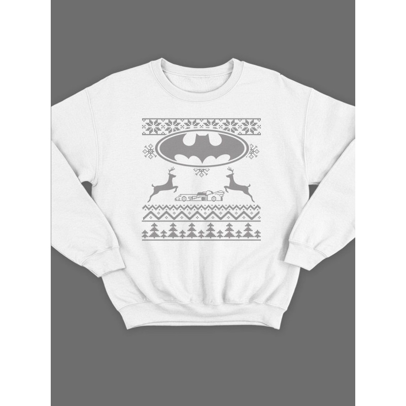 Модный свитшот - толстовка без капюшона с принтом "С новогодним принтом и знаком бэтмена". Свитшот с прикольной надписью подходит для подростков, для мужчин и женщин всех возрастов. Отлично подходит как подарок на День Рождения пепе, маме, мужу, жене, парню, девушке. Прикольная надпись на свитшоте выделит вас из толпы и подчеркнет уникальность. Прикольные мужские и женские свитшоты состят из 100% хлопка и идут размер в размер как указано в товаре и должны смотреться свободно, поэтому не следует выбирать слишком маленький размер, а лучше выбрать размер с запасом. Все толстовки без капюшона унисекс. По умолчанию в товаре указан выбор мужских размеров. Женские размеры - на 1 размер меньше чем мужские. Цвет: белый, с серым принтом.