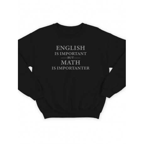 Модный свитшот - толстовка без капюшона и без молнии с принтом "English is important but math is importanter"Свитшот с прикольной надписью подходит для подростков, для женщин, девушек и девочек всех возрастов. Отлично подходит как подарок на День Рождения, на 8 марта или на Новый Год маме, бабушке, жене, дочке, подруге, девушке или сестре. Прикольная надпись на свитшоте выделит вас из толпы и подчеркнет уникальность.Стильные кофты без капюшона есть в наличии в больших размерах, с длинными рукавами, однотонные. Отлично подойдут как зимняя одежда (так как свитшоты достаточно широкие по стилю) и как летняя.Прикольные, смешные и оригинальные мужские и женские свитшоты состоят из 100% хлопка и идут размер в размер как указано в товаре и должны смотреться свободно.Лучшая одежда - это оригинальная одежда!Все свитшоты - унисекс, подходят как для мужчин, так и для женщин. По умолчанию в товаре указан выбор женских размеров. Мужские размеры - на 1 размер больше, чем женские.