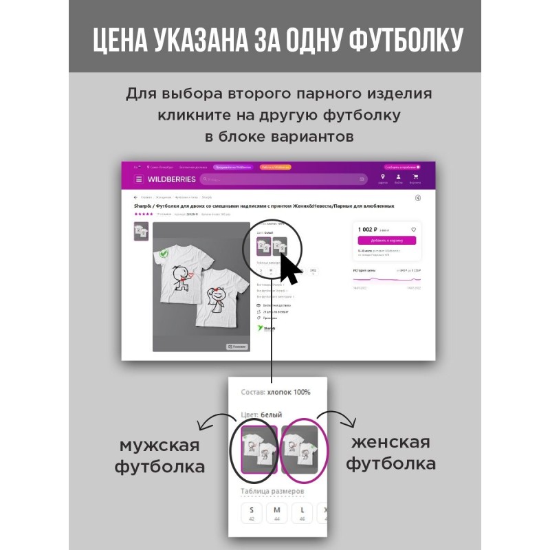 Цена указана за одно изделие (на фото отмечено зелёной галочкой). Для выбора второго парного изделия необходимо выбрать следующее изделие в блоке вариантов. Парная футболка для двоих с принтом "Я Твое & Ты Моё". Цвета: черный, белый, серый. Прикольные парные футболки подходят для влюбленных, для мужа и жены, для молодоженов, для парня и девушки, для друзей. Family look - модный тренд, парная одежда что объединяет и выделяет семью.Прикольные надписи, парные рисунки и принты с картинками на футболках подходят как для подруг, сестер, так и для братьев, для папы и для сына, для мамы и дочки, для брата и сестры, на день рождения, на 14 февраля, на годовщину.Оригинальные футболки для пар с принтами состоят из 100% хлопка. Футболки унисекс - фасон подходит как для мужчин, так и для женщин. По умолчанию в карточке товара указан выбор мужских размеров. Женские размеры - на 1 размер меньше.Футболки должны смотреться свободно, поэтому не следует выбирать слишком маленький размер, а лучше выбрать размер с запасом.