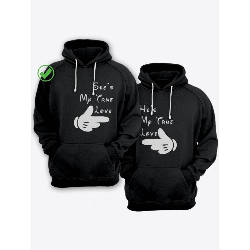 Парная толстовка для двоих - худи с принтом "She's my true love & He's my true love"