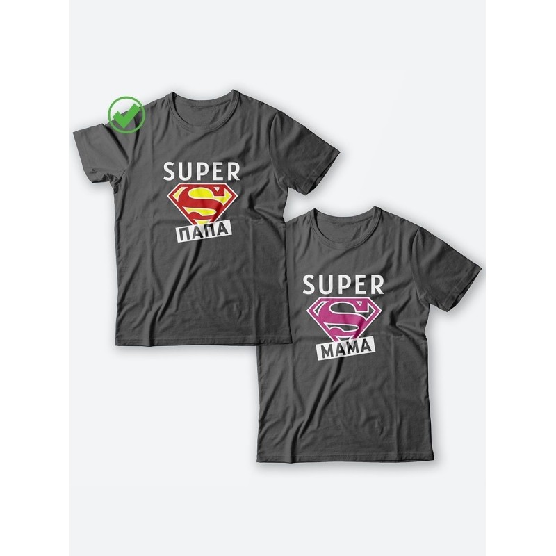 Парная футболка для двоих с принтом "Super папа & Super мама"